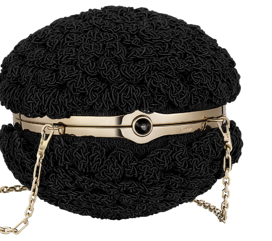 Cartier’s round crochet bag /Elevate her evening look with a limited-edition statement. Recapturing the Roaring Twenties spirit, these spherical and geometric clutches feature fine stones, onyx clasps, and suede interiors. An exquisite piece of wearable history. cartier.com