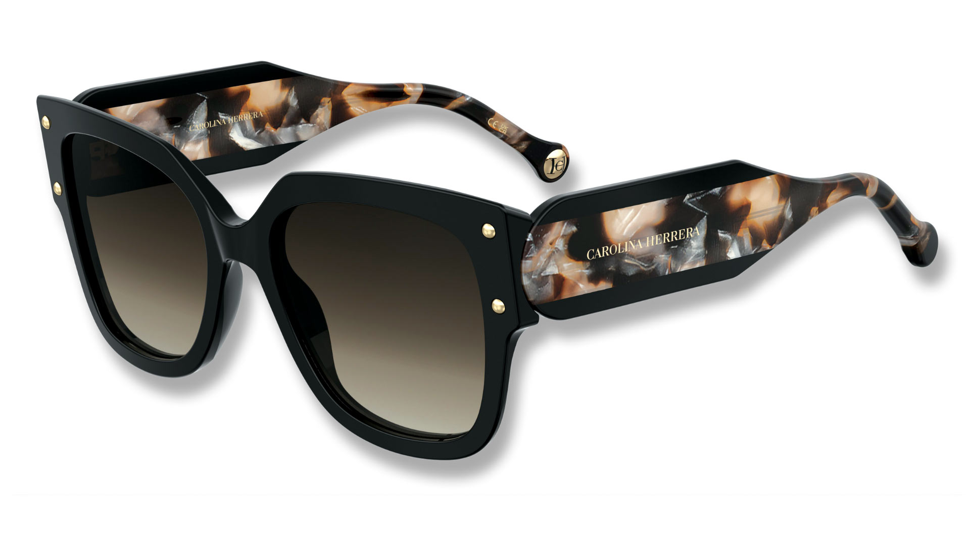 House of Herrera sunglasses / Channel effortless sophistication. Bold, oversized frames feature hallmark metallic studs and a distinct CH monogram. These luxurious sunglasses capture the glamorous femininity and sleek lines of the ready-to-wear collection. | carolinaherrera.com
