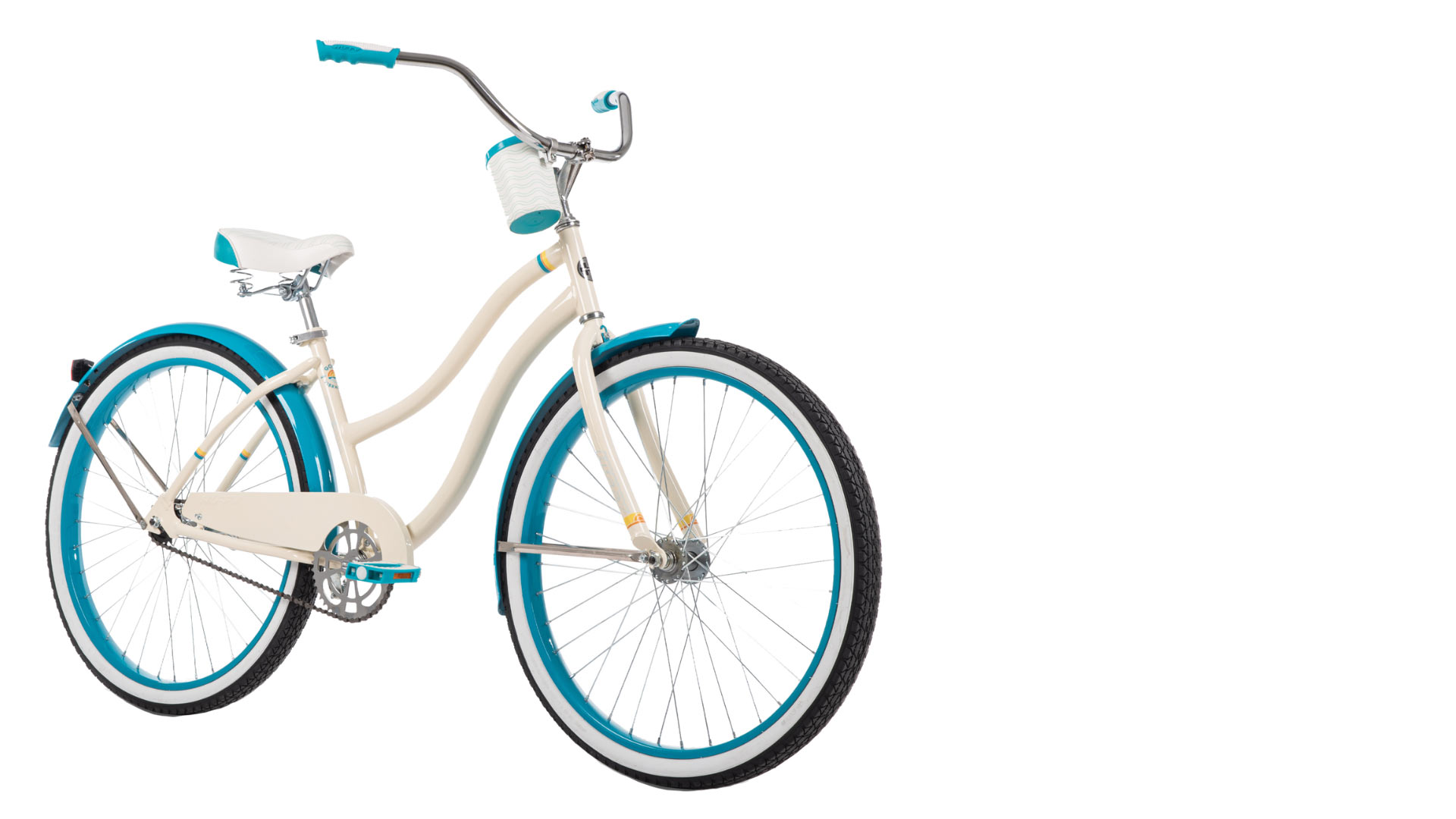 Huffy’s Good Vibrations /Experience the ultimate in relaxed cycling. The frame ensures an effortless, upright cruise. With a padded spring saddle, handy front basket, and sleek chrome accents, it’s the perfect stylish getaway for everyday errands. huffy.com